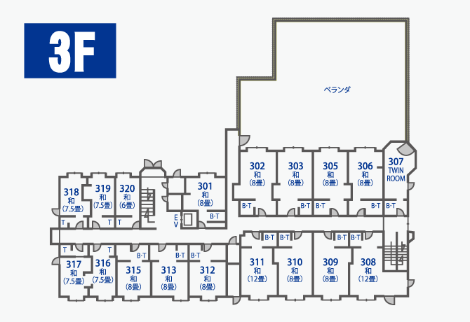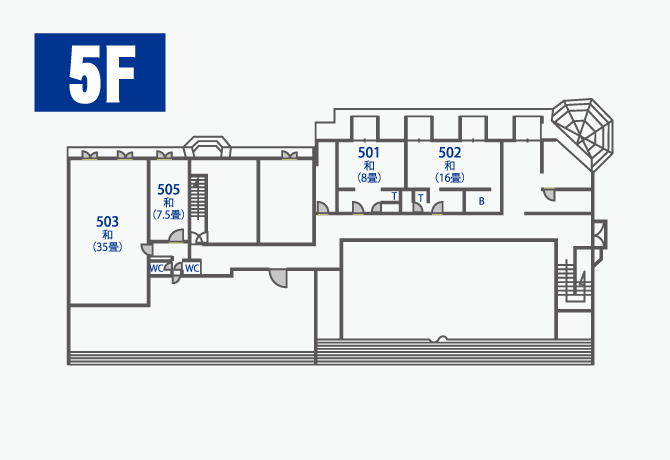 | 室数 建物構造 | 構造:鉄筋コンクリート5階建 和室38部屋 洋室12部屋 計50室 |